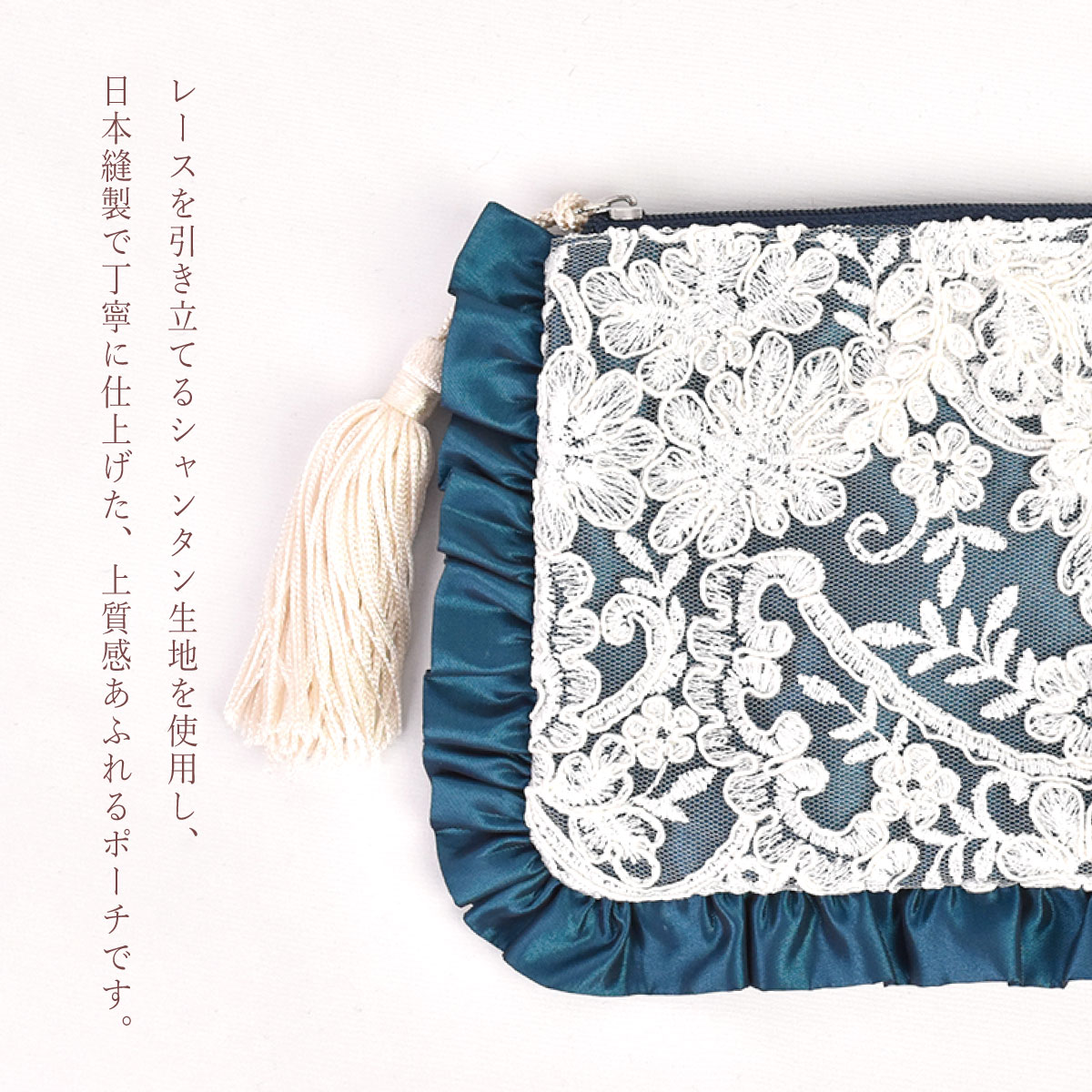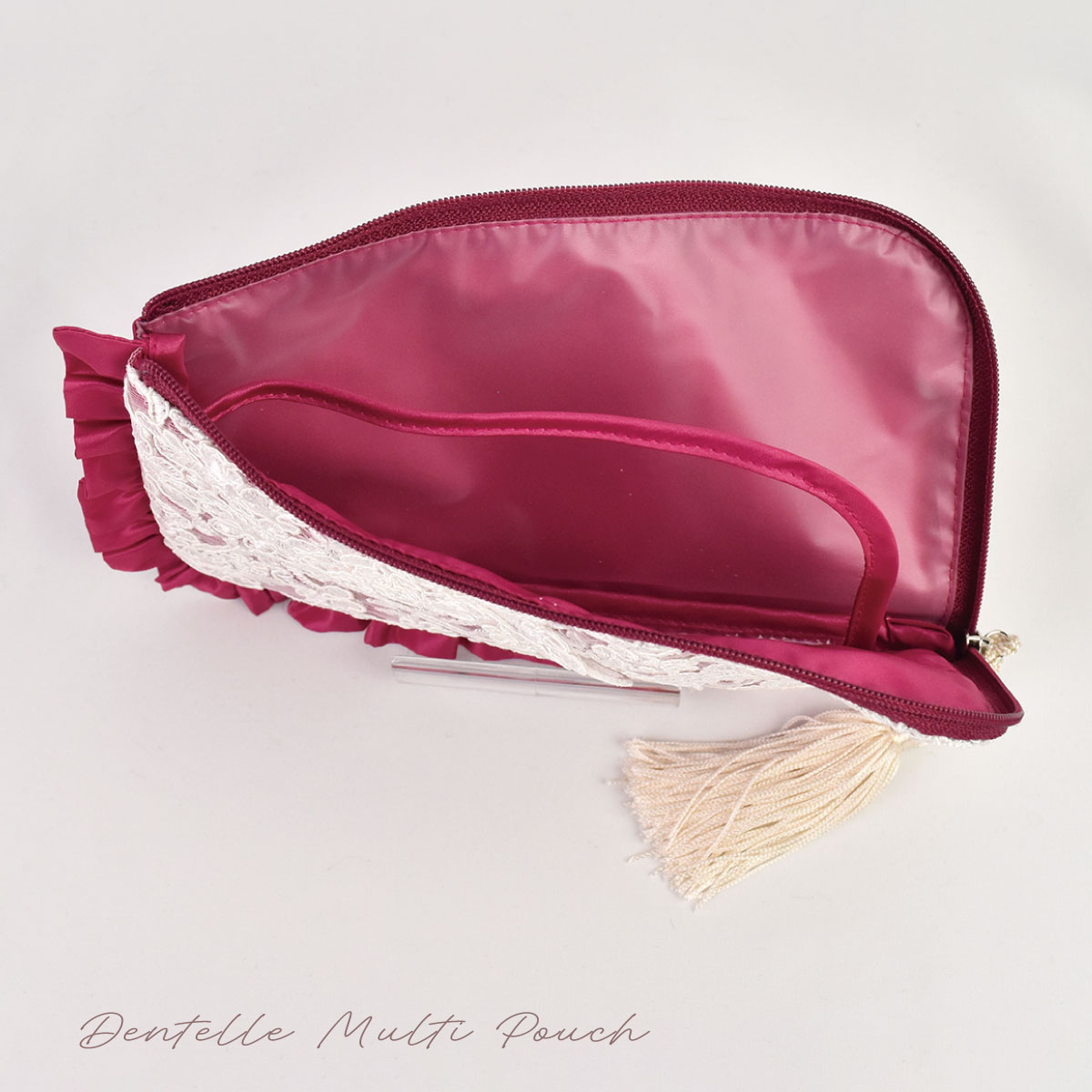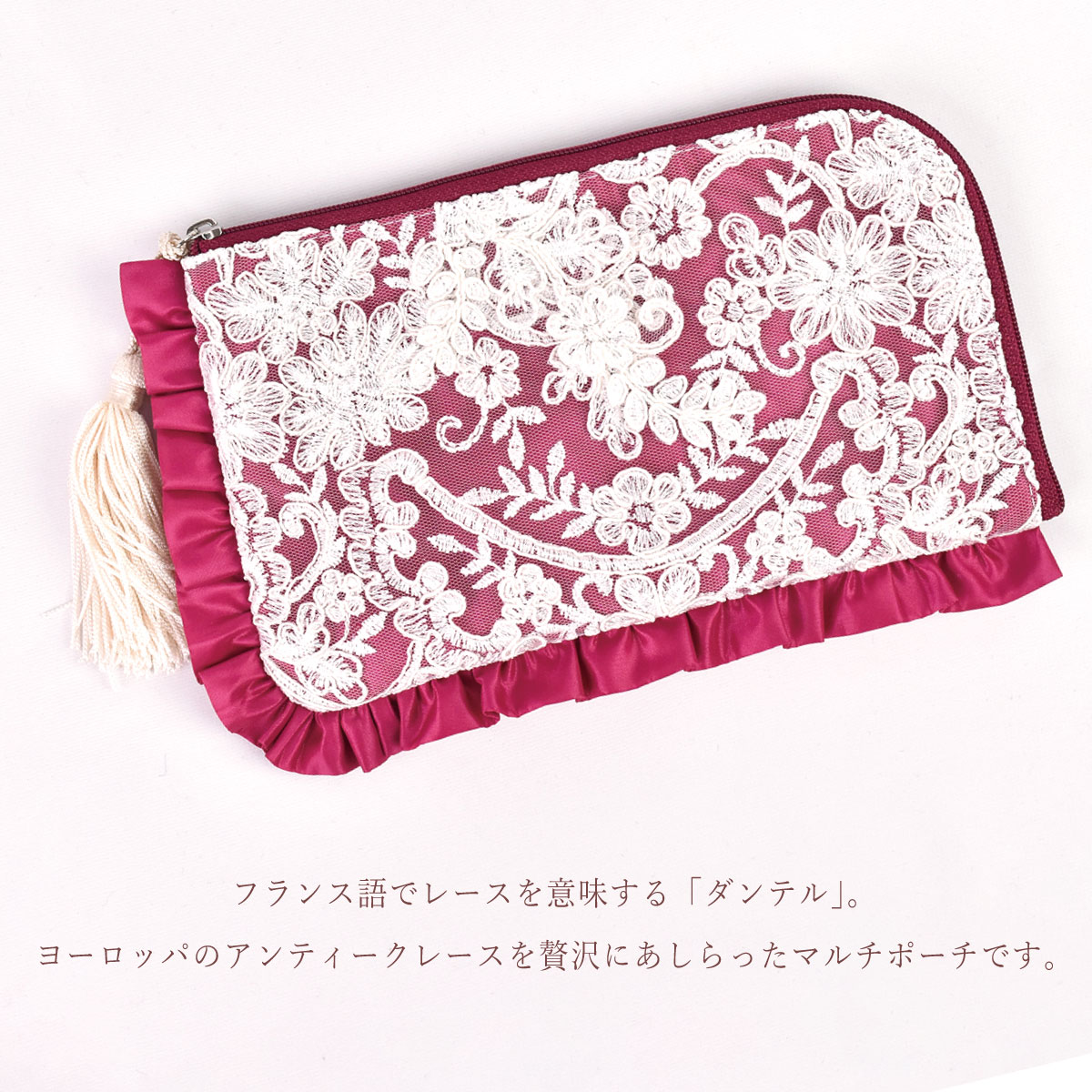 アンティーク感満載のヨーロッパのレースを使用した贅沢なマルチポーチ。