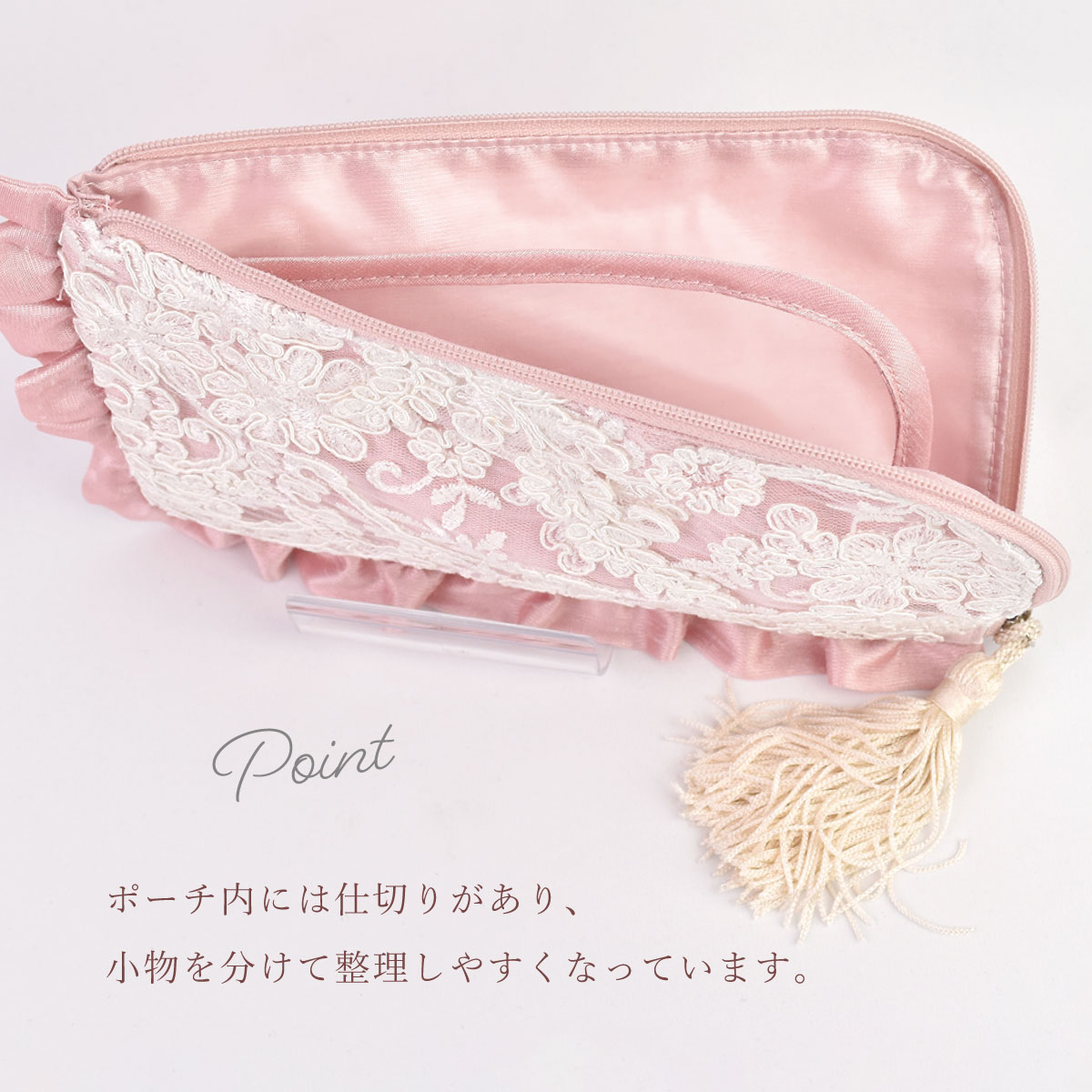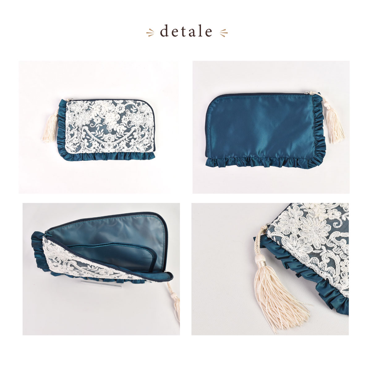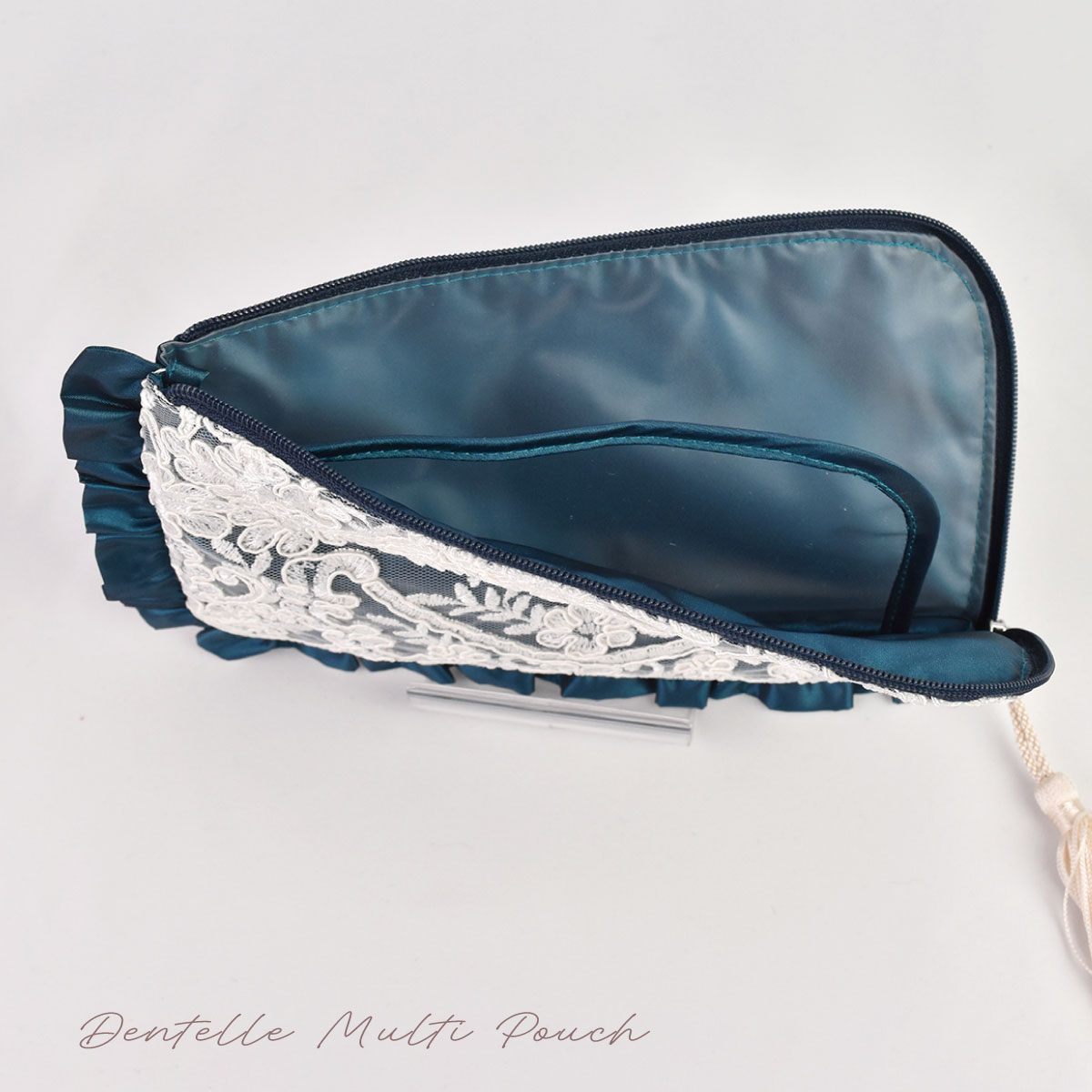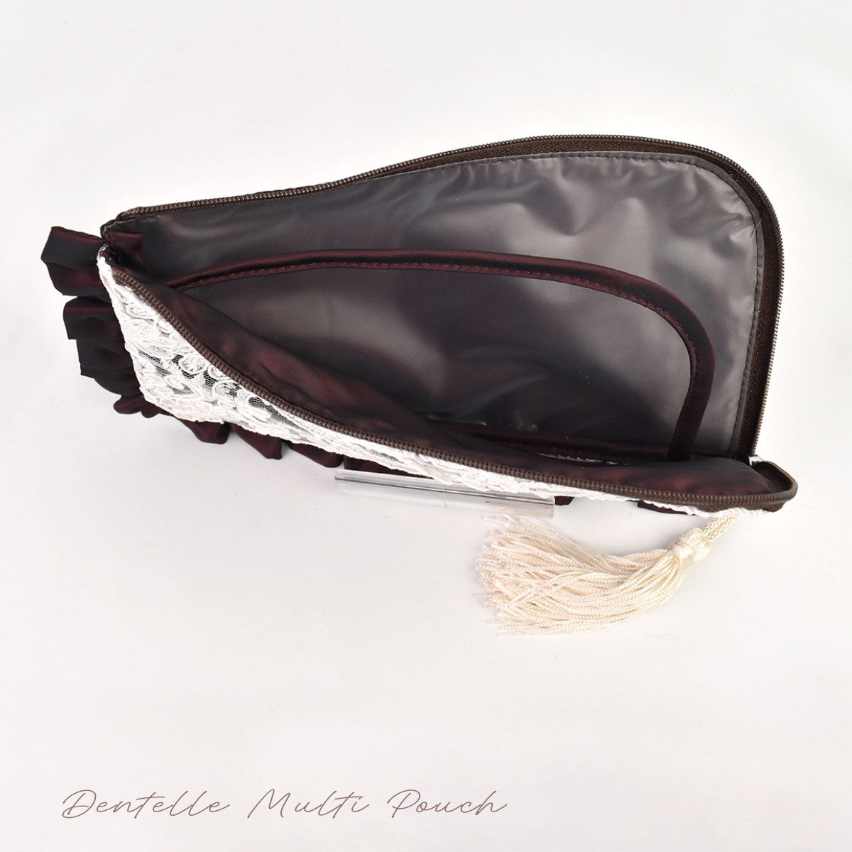 アンティーク感満載のヨーロッパのレースを使用した贅沢なマルチポーチ。