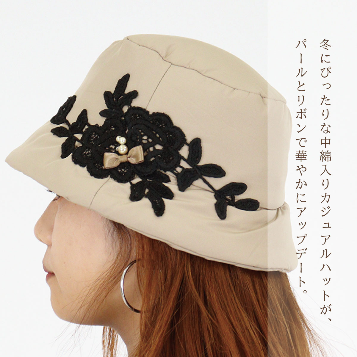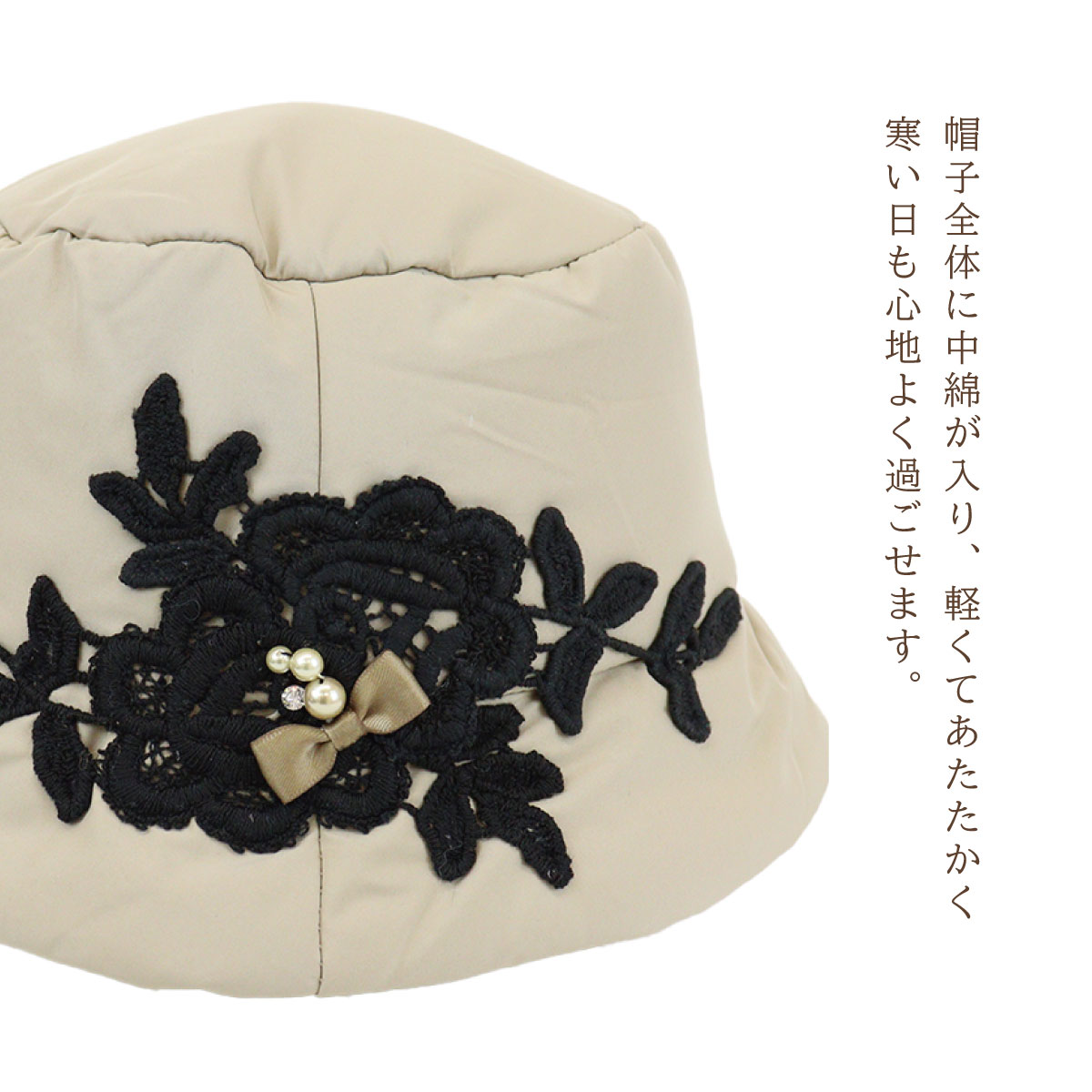 商品名: | 中綿入りレースハット |
