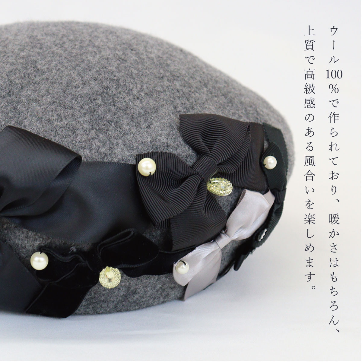 素 材: | 本体/毛100% リボン/ポリエステル100% |