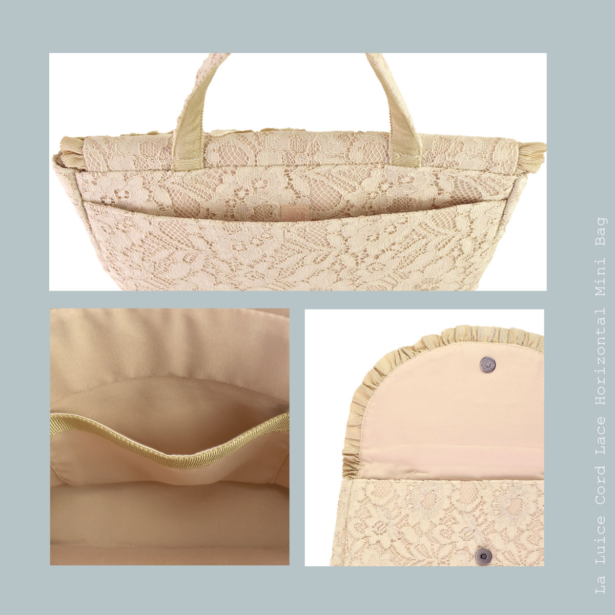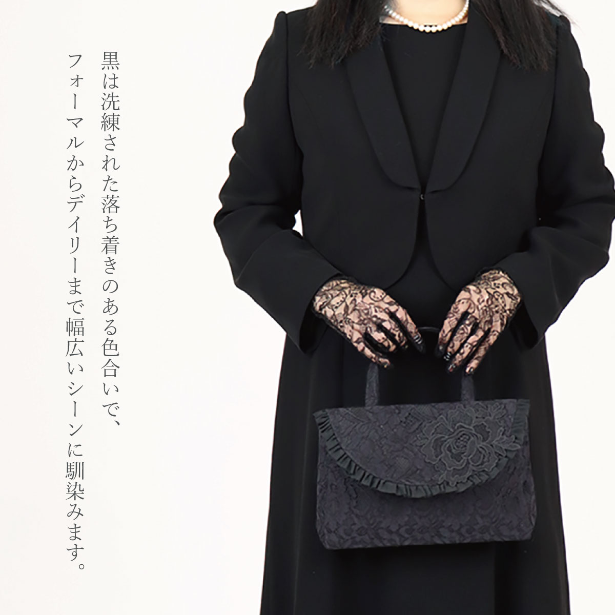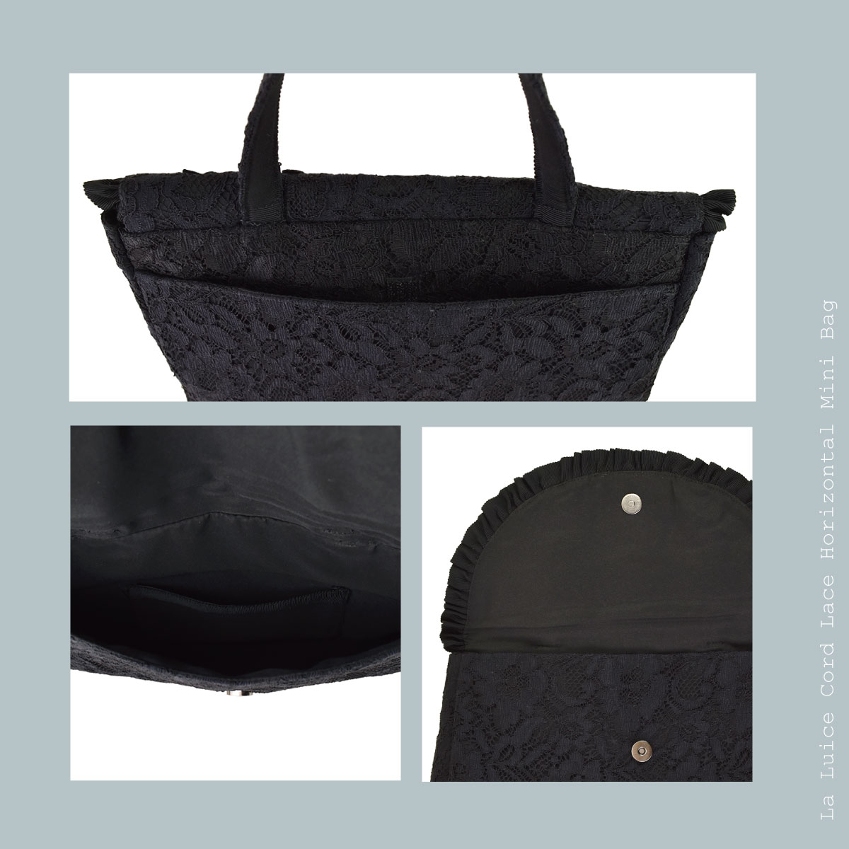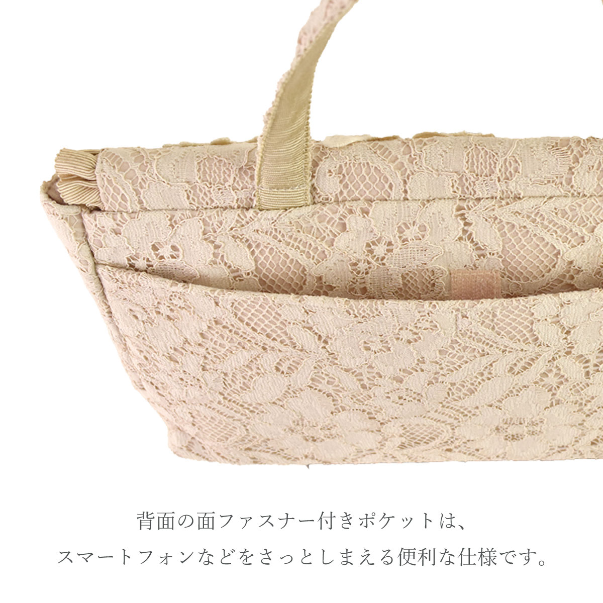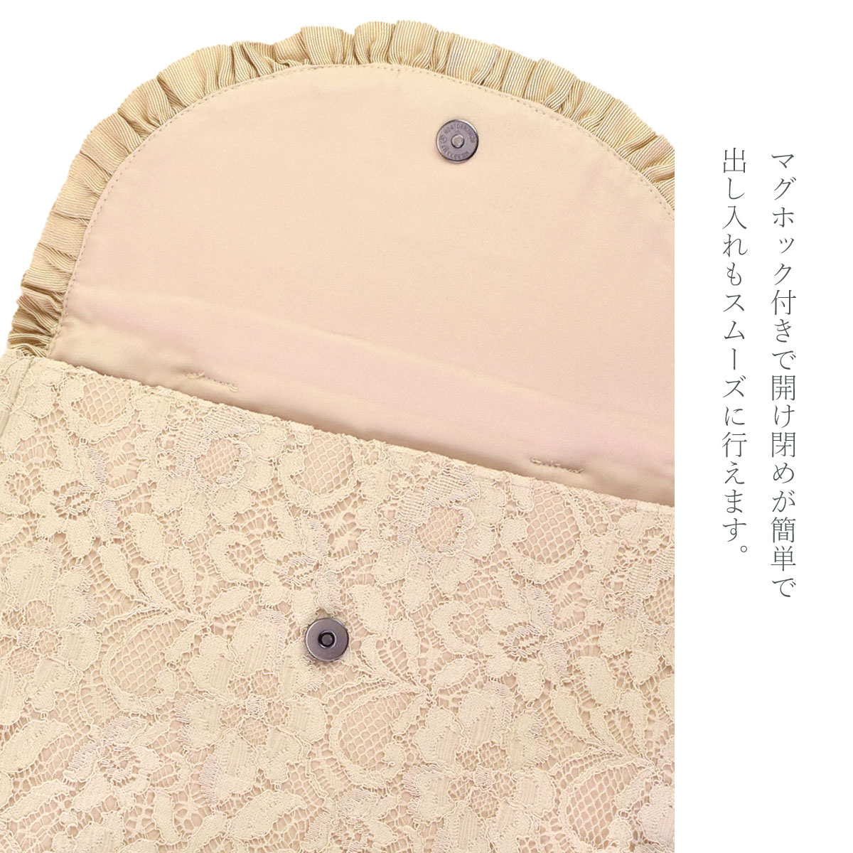総レースとお花のモティーフがポイント。大きなバッグの中から取り出して会場でおつかいいただくなどありそうでなかったサイズ感のフォーマル対応◎