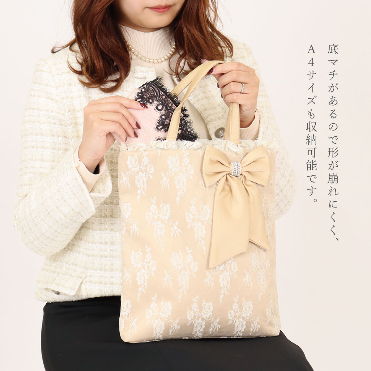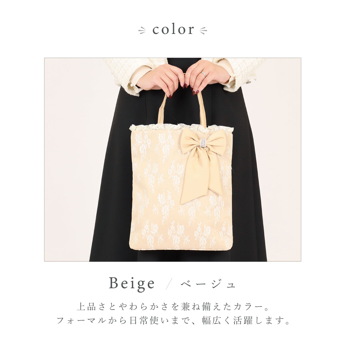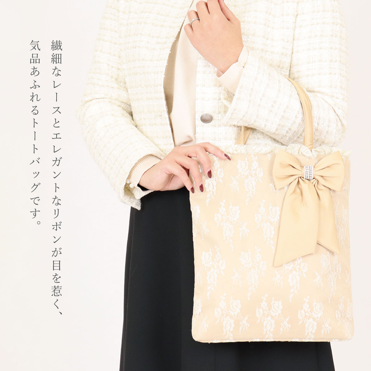 | 商品名: | ジュエルリボンマチ付きトートバッグ |
