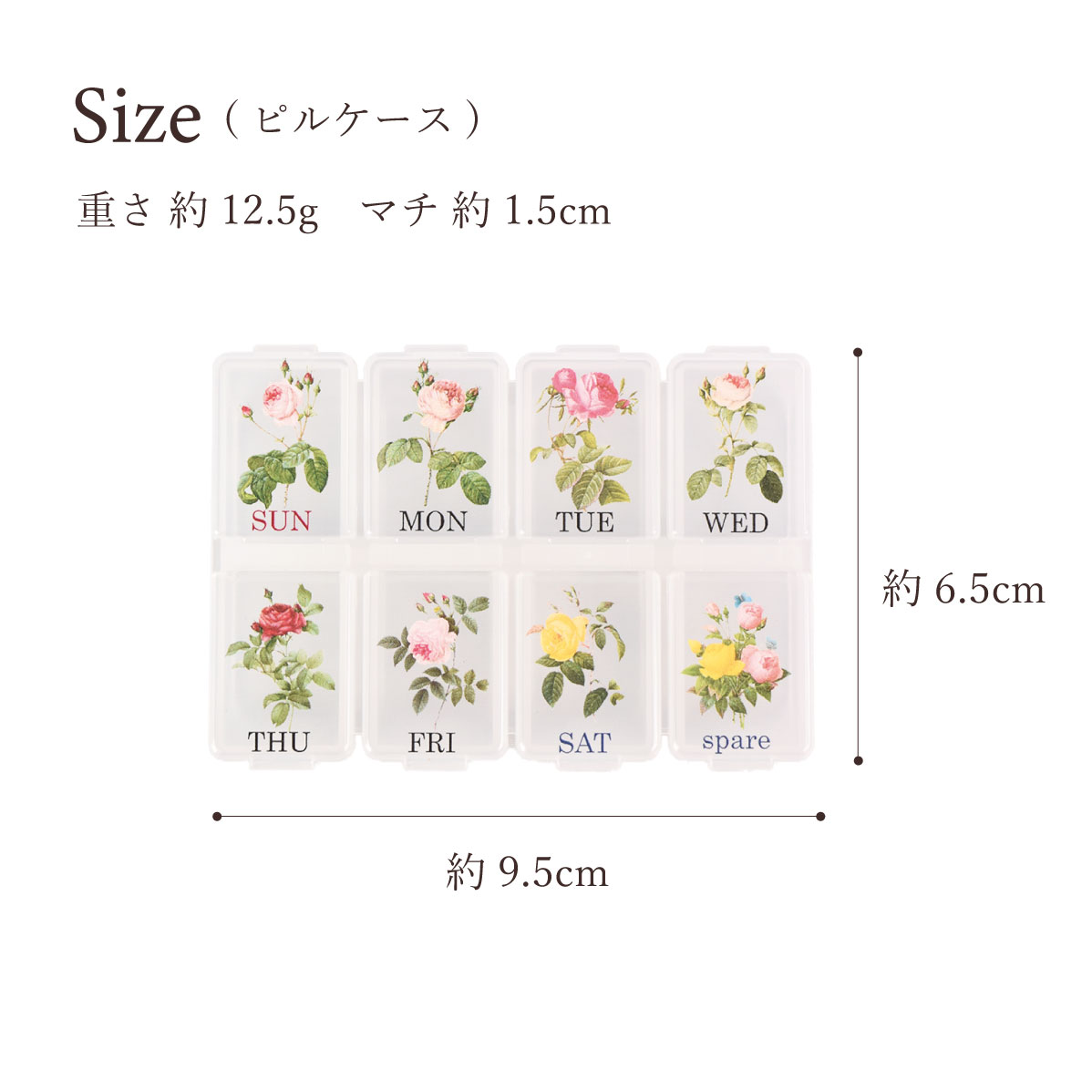 | サイズ: | 縦約9cm×横幅約13cm(本体サイズ) 縦約9.5cm×横約6.5cm 厚み約1.5cm(ピルケースサイズ) |