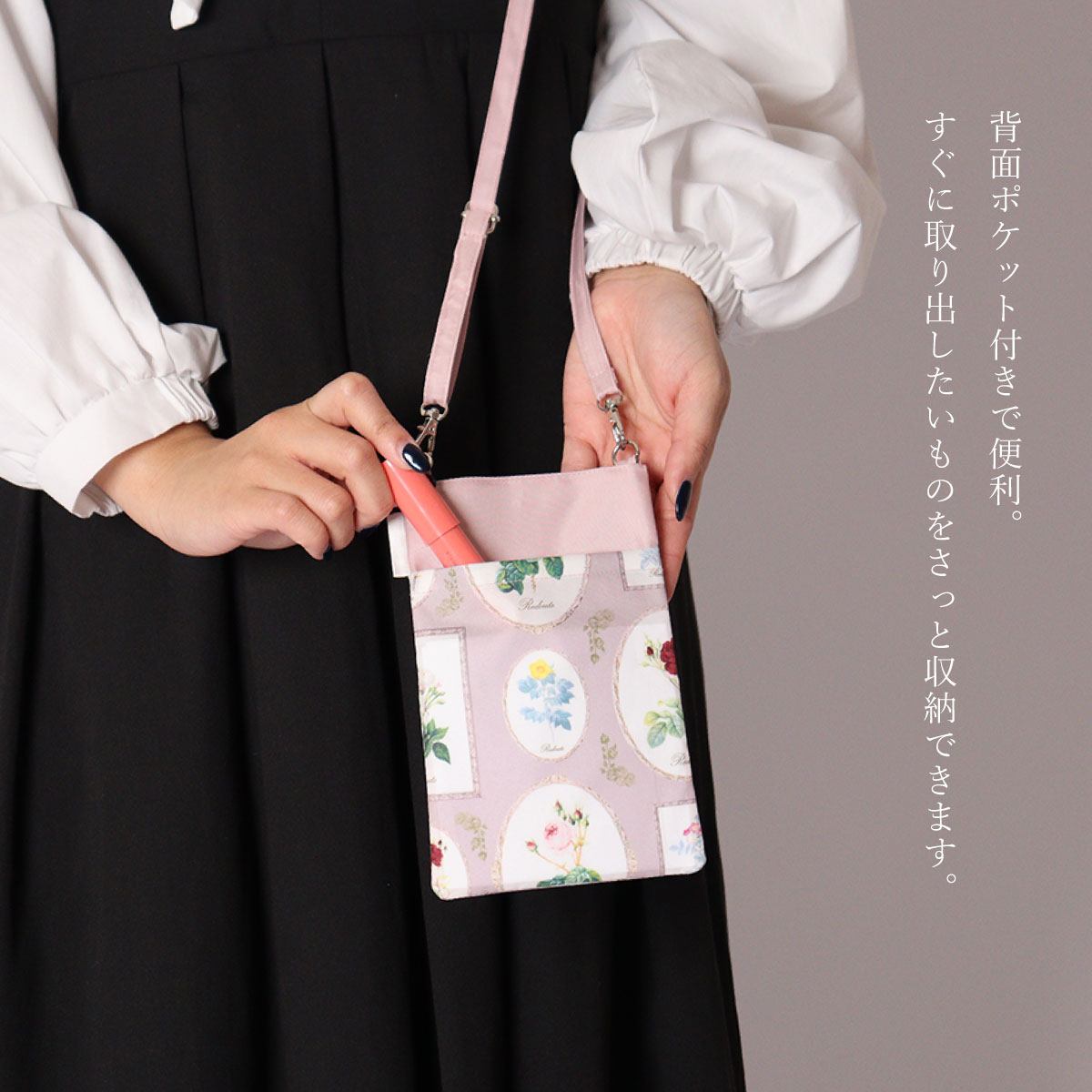 | 商品名: | ルドゥーテフレーム柄リボンスマホポシェット |