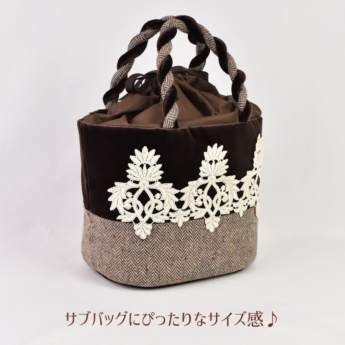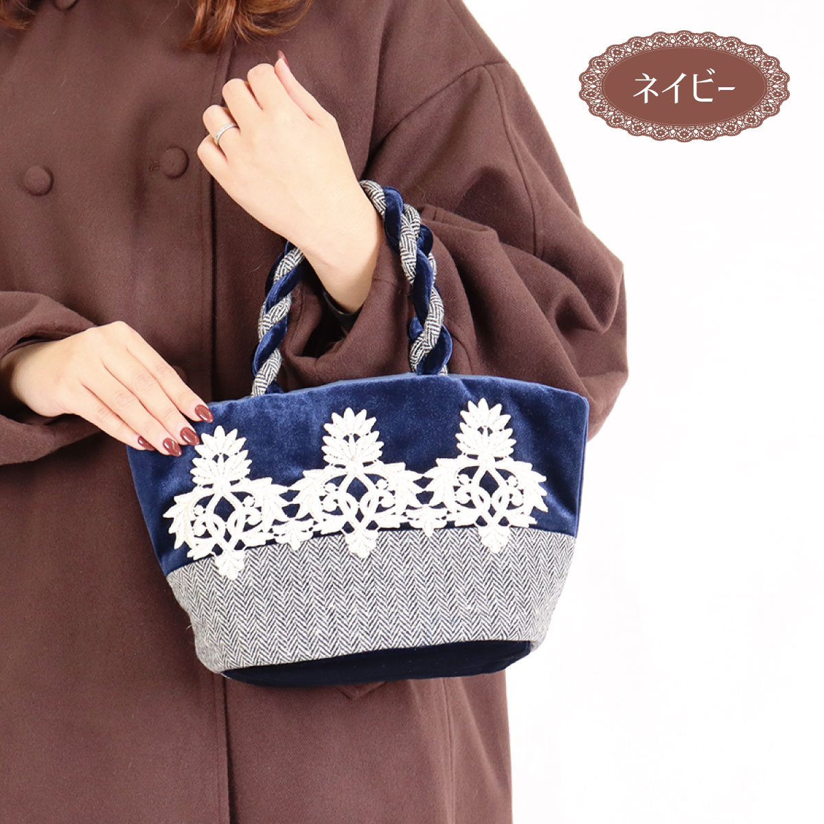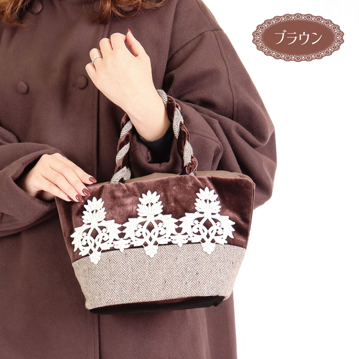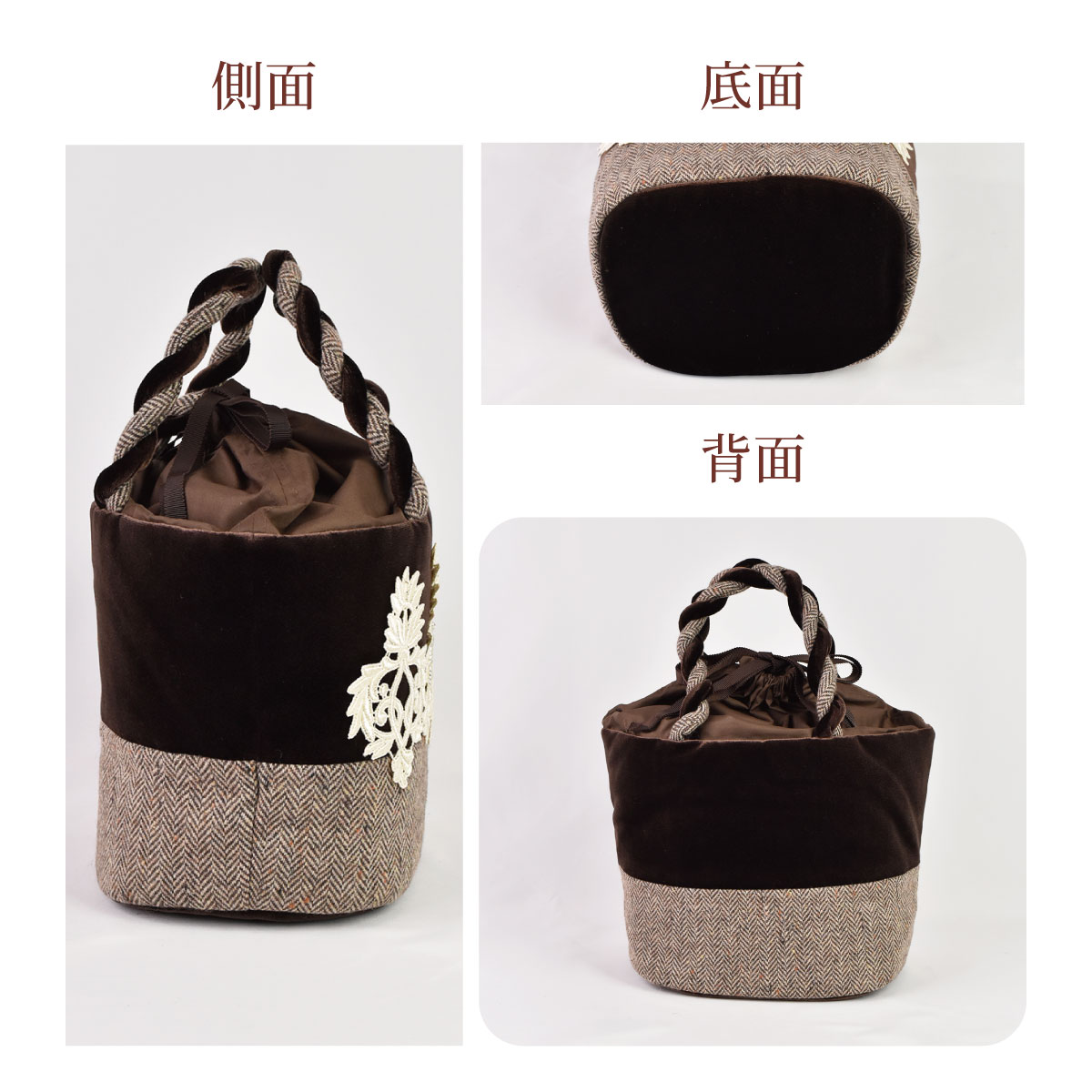 | 素 材: | 本体表/ベロア ポリエステル100% ネップツイード ウール65% ポリエステル25% アクリル、ナイロン、レーヨン10% 本体裏/ポリエステル100% レース/刺繍レース 上糸レーヨン100% 下糸綿100% |