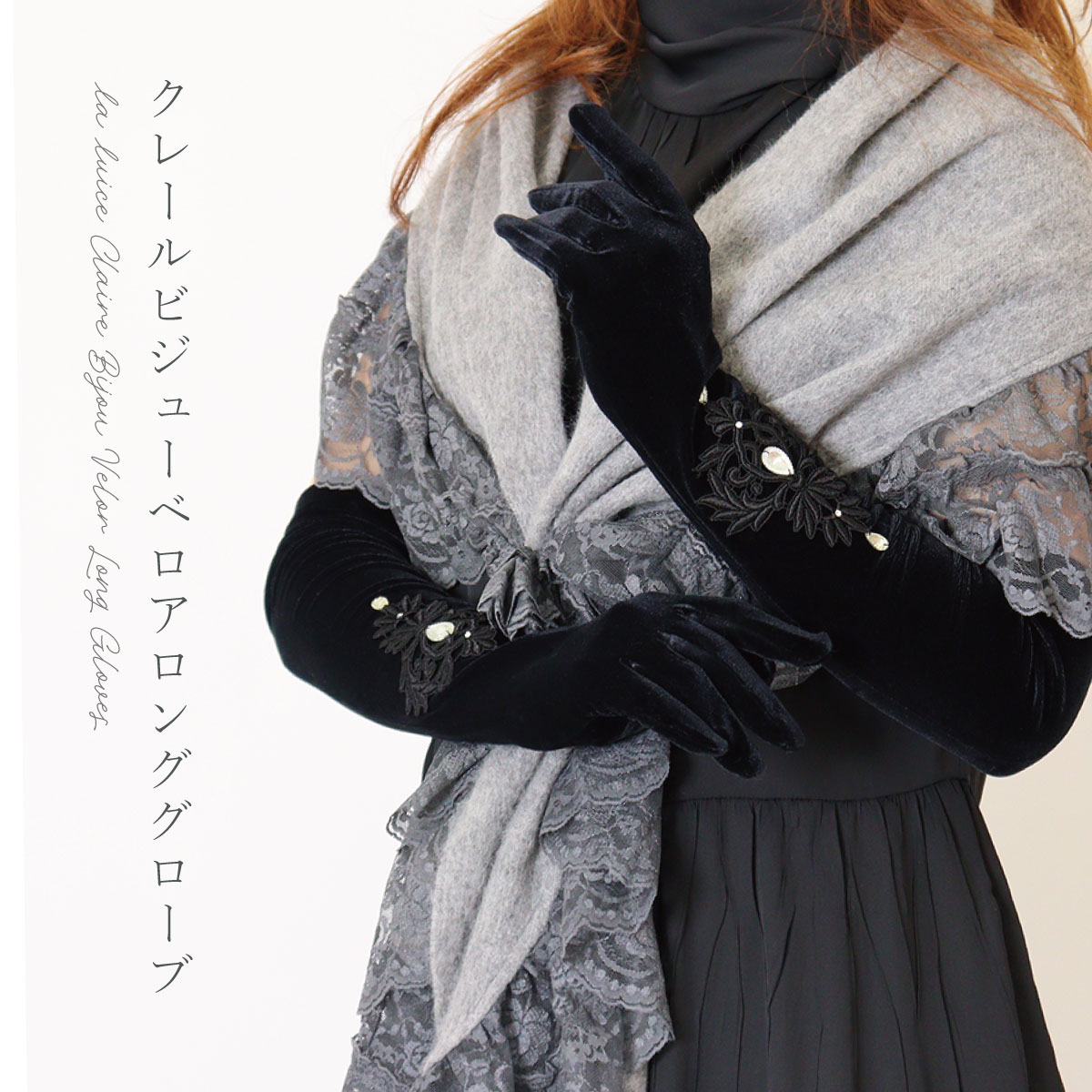 手袋 ロング レディース かわいい おしゃれ 暖かい 冬 防寒 あったか リボン レース ビジュー グローブ プレゼント【LALUICE ラルイス】