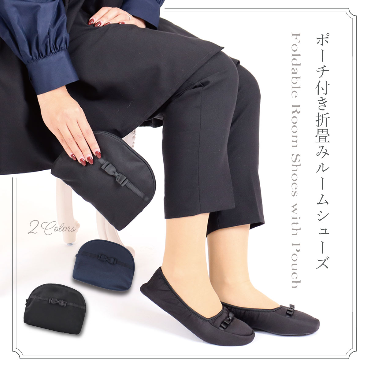 LALUICE ラルイス 折畳みルームシューズポーチ入り スリッパ 軽量 フォーマル 入学 卒業 ブラック ギフト 母の日