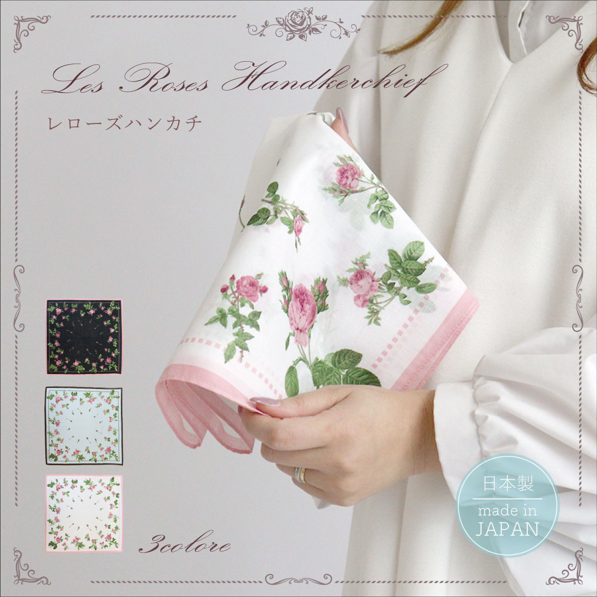 ハンカチ 薔薇 バラ 日本製 女性 レディース 婦人 53×53 綿100% お礼 お祝い 記念品 誕生日 プレゼント 贈り物 プギフト LALUICE
