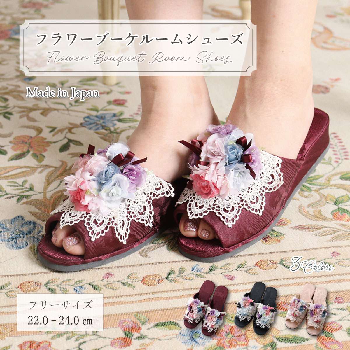 フラワー レース ルームシューズ レディース 室内履き 立体フラワー エレガント 来客用スリッパ 上品 大人可愛い 軽量 部屋履き ギフト 春夏秋冬 LALUICE
