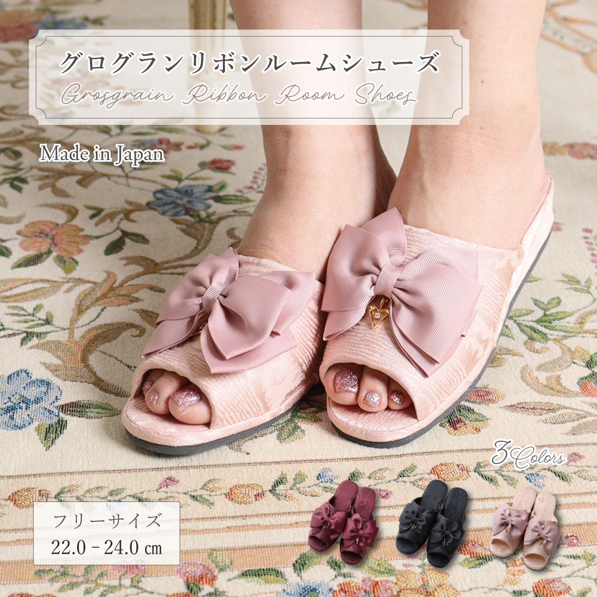 グログランリボン ルームシューズ レディース 室内履き スリッパ リボン エレガント 大人可愛い 軽量 来客用スリッパ 部屋履き ギフト 春夏秋冬 LALUICE