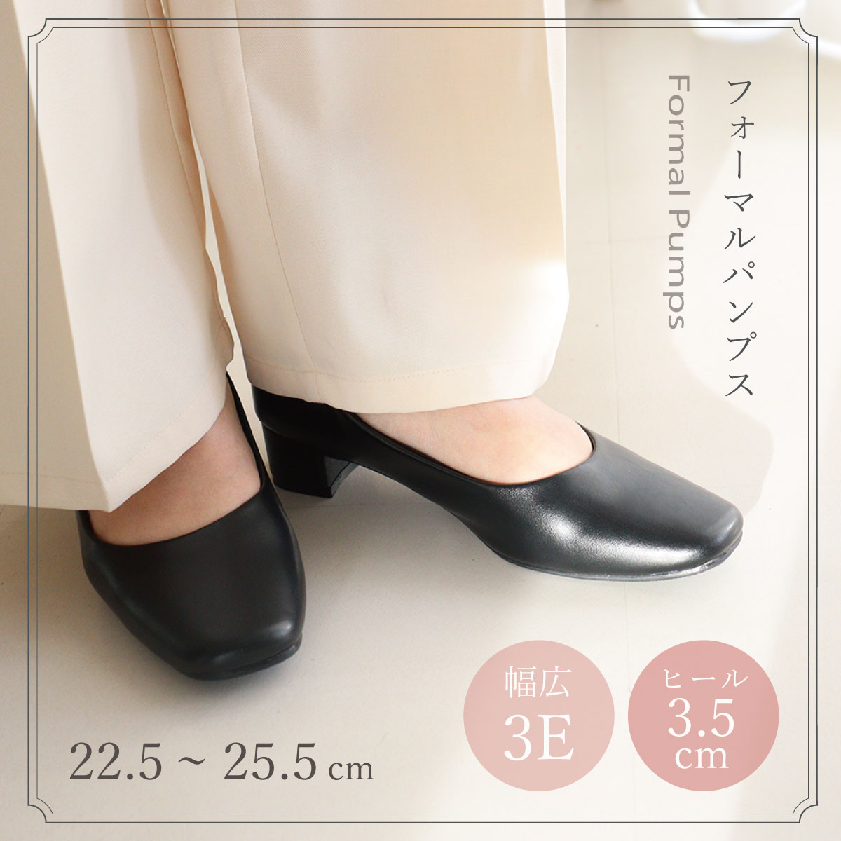 フォーマルパンプス 黒 レディース 3.5cmヒール 痛くない ローヒール 歩きやすい 冠婚葬祭 就活 オフィス 立ち仕事 幅広 21.5cm~25.5cm ブラック 【LALUICE】