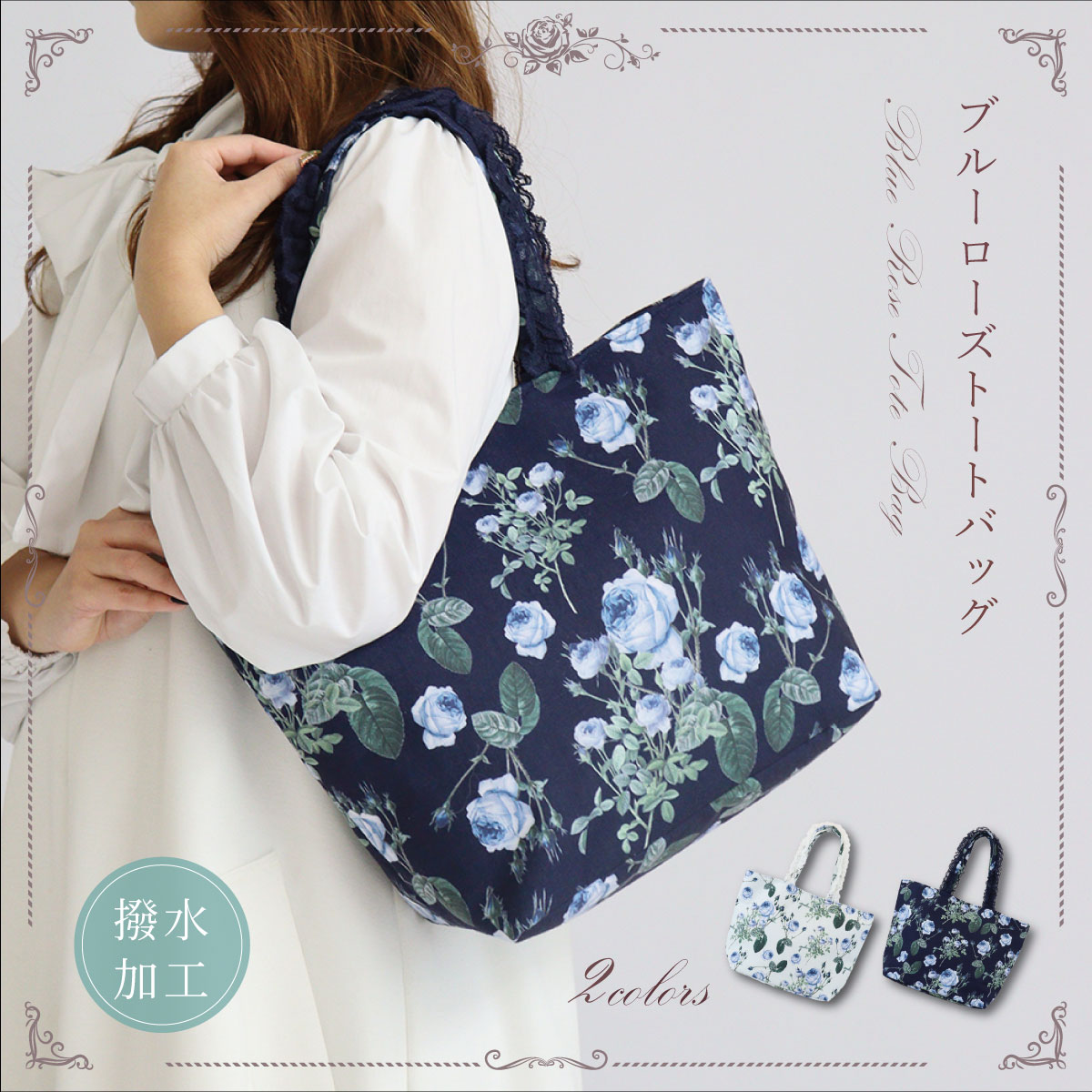 トートバッグ レディース かわいい おしゃれ マチ広 撥水 ポケット付 軽量 大容量 自立 マグネット開閉 花柄 レース バラ 薔薇 プレゼント【LALUICE】