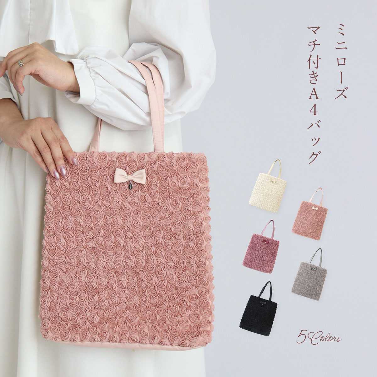 トートバッグ ミニローズ マチ付 ミニトート A4バッグ リボン おしゃれ かわいい レディース 手提げ 薔薇 レッスンバッグ ラルイス