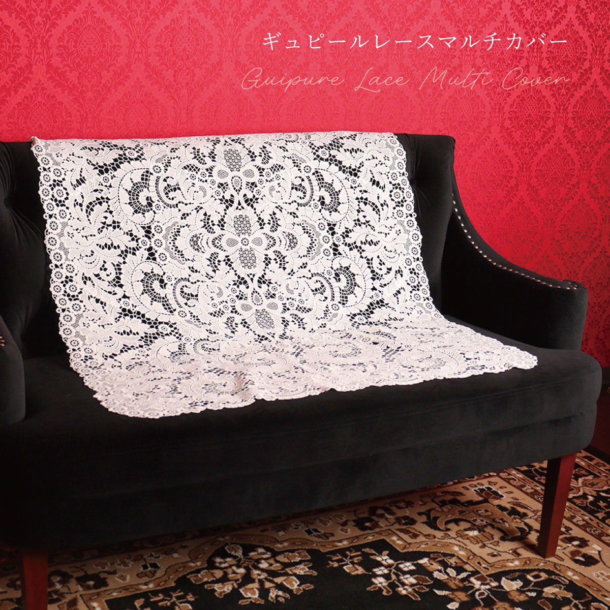 インテリア マルチカバー ソファーカバー テーブルクロス レース ギュピール 大きめ ホワイト 120cm×90cm 模様替え LALUICE 公式