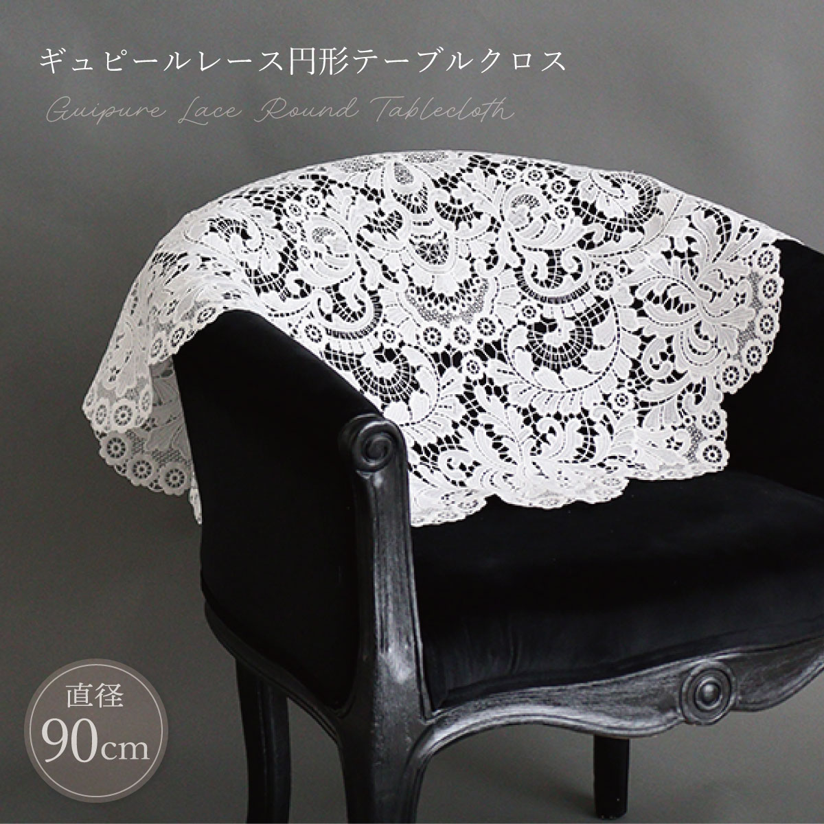 インテリア 円形 マルチカバー ソファーカバー テーブルクロス レース ギュピール 大きめ ホワイト 90cm 模様替え LALUICE 公式