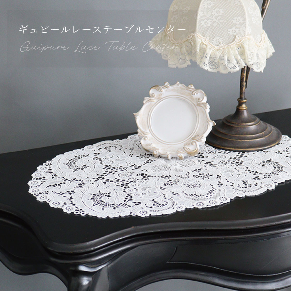 インテリア テーブルセンター 35cm×50cm レース ギュピール ホワイト エレガント ダイニング 玄関 コンソール 装飾 模様替え LALUICE 公式