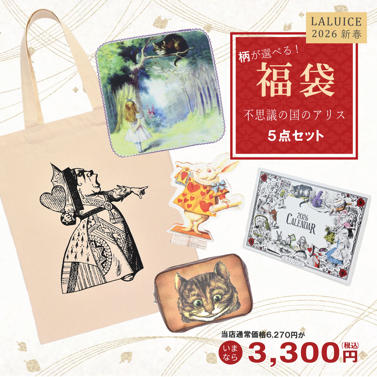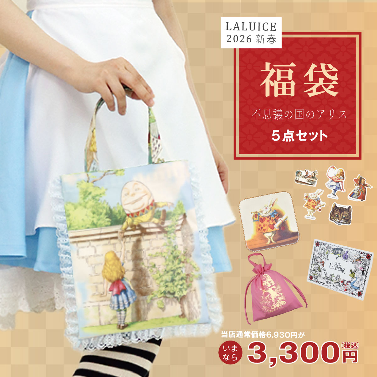 数量限定 福袋 2026 ハッピーパック ハッピーバッグ お買い得 レディース 可愛い ALICE 不思議の国のアリス バッグ 雑貨 プレゼント ギフト 【LALUICE】