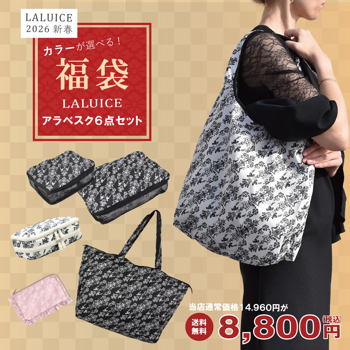 数量限定 選べる福袋 2026 ハッピーパック ハッピーバッグ お買い得 レディース アラベスク 旅行 トラベル バッグ 雑貨 プレゼント ギフト 送料無料【LALUICE】