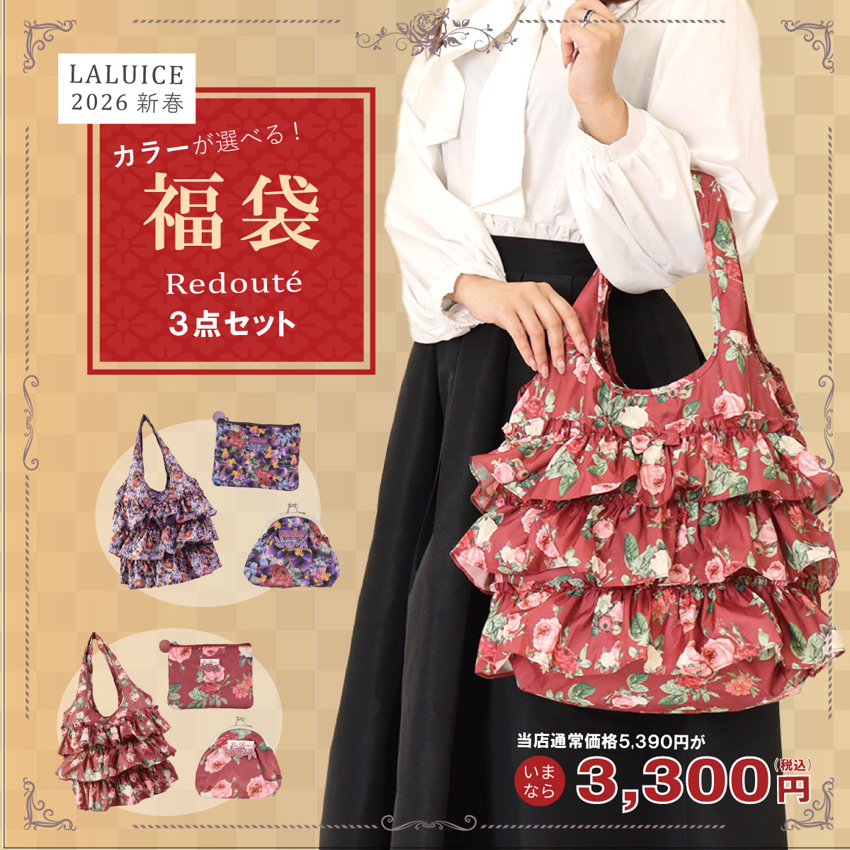 数量限定 選べる福袋 2026 ハッピーパック ハッピーバッグ お買い得 レディース フリル バッグ バラ 薔薇 ルドゥーテ 雑貨 プレゼント ギフト【LALUICE】