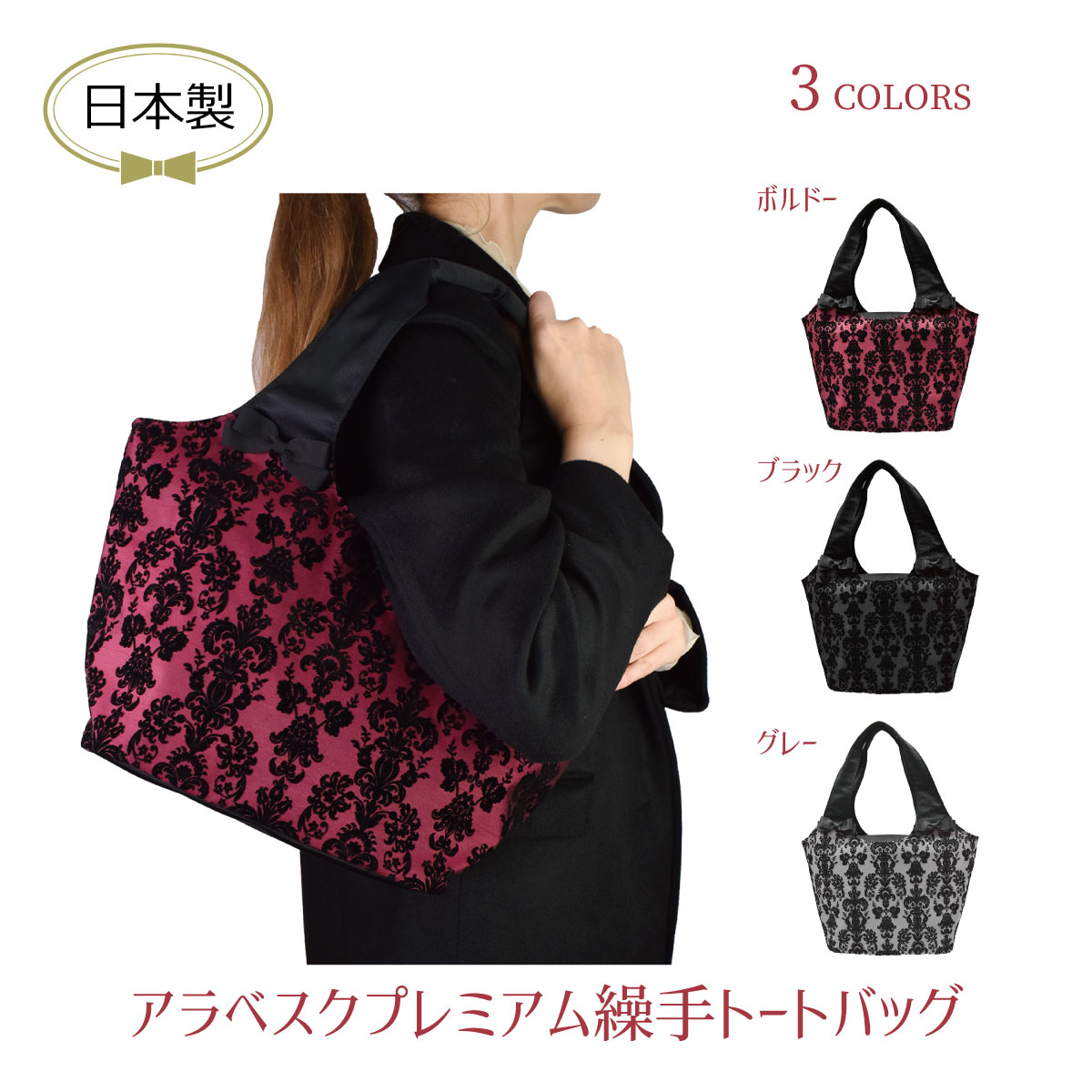 トートバッグ 大きめ 肩掛け トート ブラック グレー レッド ハロウィン アラベスク プレミアム クリスマス ギフト プレゼント【公式】【LALUICE ラルイス】